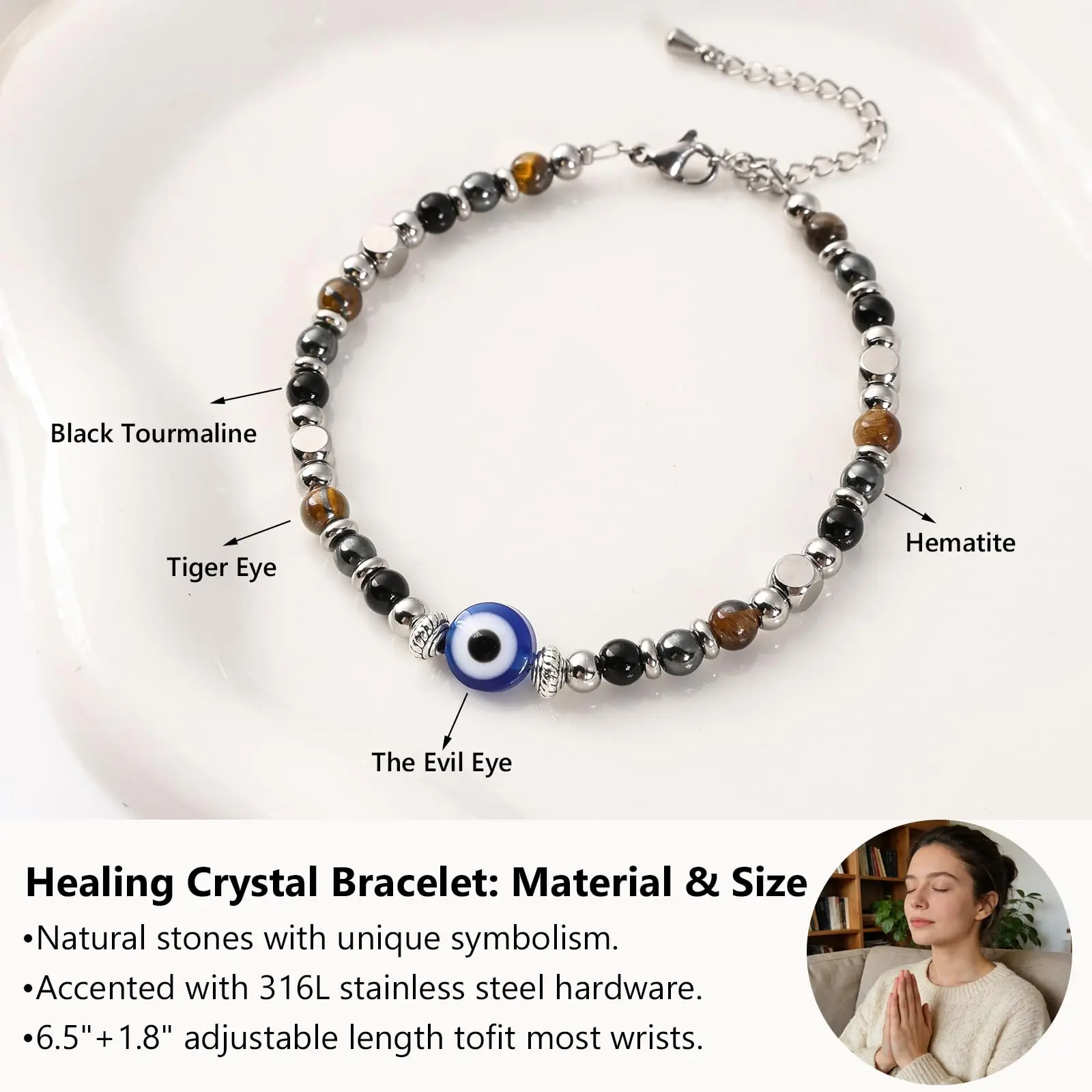 This healing crystal bracelet is designed to promote calmness and positive energy.