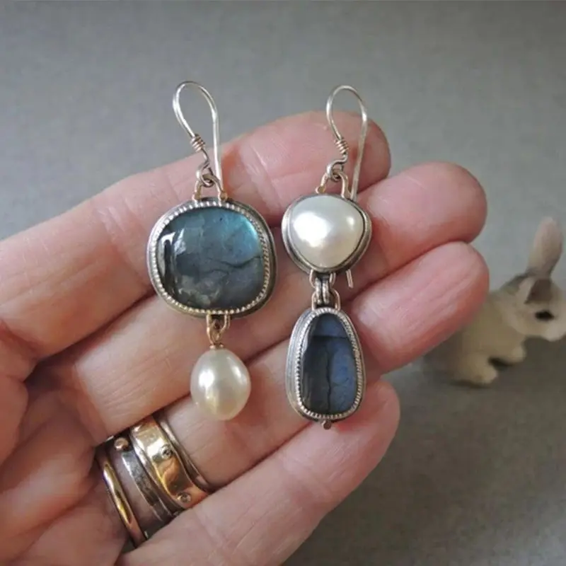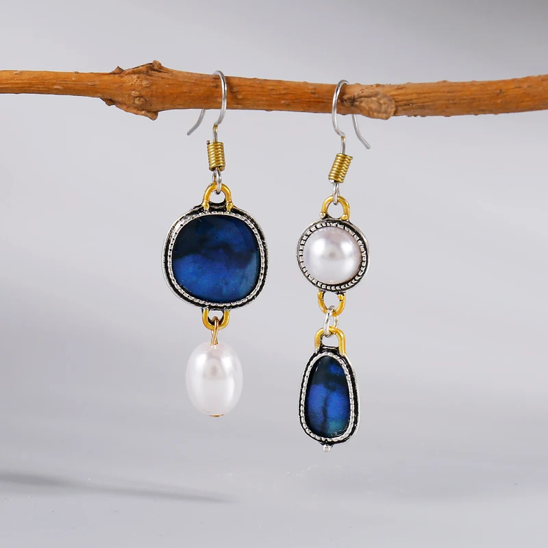 These vintage blue dangle earrings bring timeless elegance to any outfit.